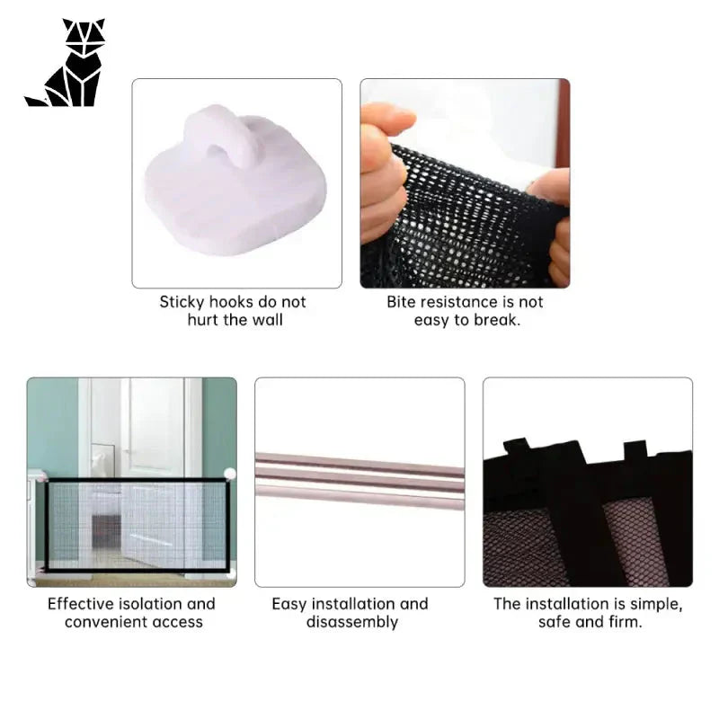 Beskrivelse : Som hundeejer ved du, at det nogle gange er nødvendigt at beskytte visse områder af dit hjem mod hundens udforskninger. Med sit innovative netdesign tilbyder vores barriere en god synlighed, der gør det muligt for dig at holde øje med din hund, mens du holder den væk fra afgrænsede områder. Uanset om det er for at undgå uheld i køkkenet eller blot for at beskytte dit dyrebare møbel mod nysgerrige kløer, er denne barriere ideel for dig.
