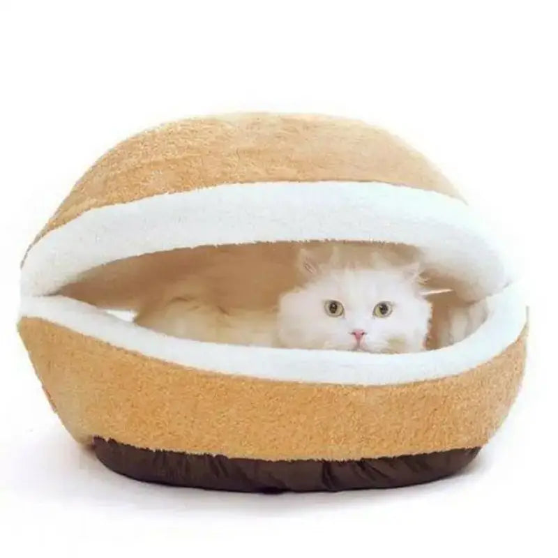 Giv din kat et paradis med vores fantastiske kattekurv i form af en hamburger. Forestil dig den, puttet i dette varme og hyggelige rede, nyder øjeblikke af ren afslapning som aldrig før. Dette unikke design er ikke bare en simpel seng, det forvandler din firbenede vens siesta til en ægte fest! Mmmmmm! Med sine livlige farver og legende udseende vil det helt sikkert tilføje et strejf af originalitet til dit hjem.