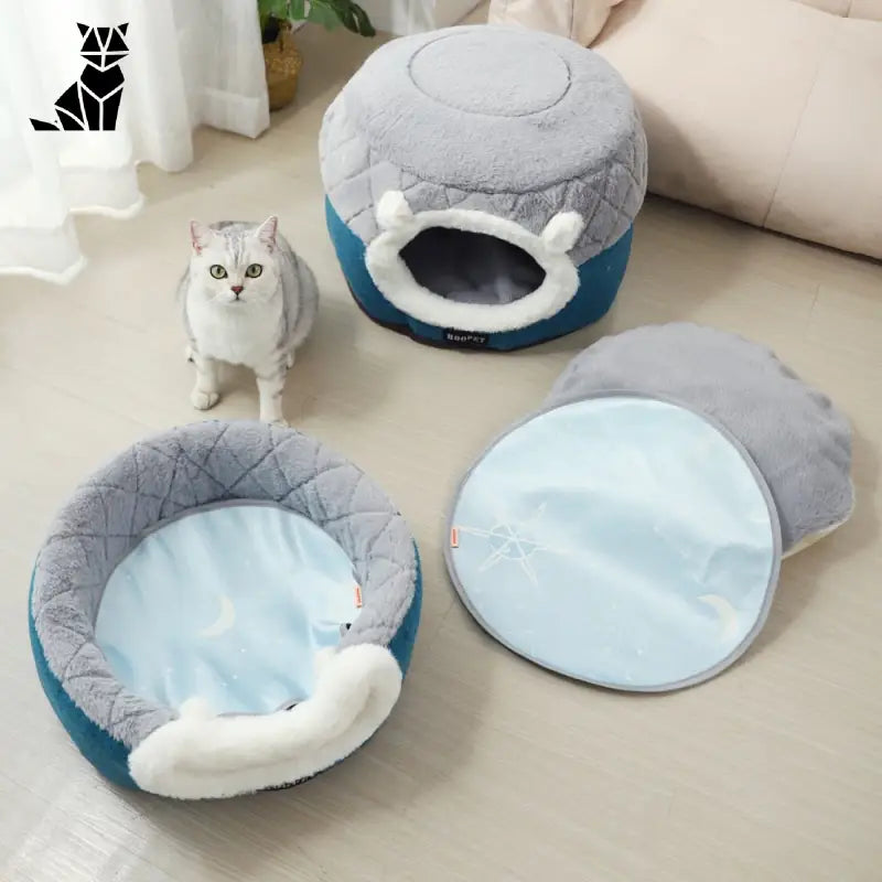 Giv din kat eller lille hund et hyggeligt og varmt rum med denne bløde seng, der hurtigt vil blive din firbenede vens yndlingshjørne. Designet ikke kun til funktionalitet, men også til æstetik, forvandler denne seng ethvert sted til et fristed for komfort. Uanset om det er til en fredelig lur i solen eller stille nætter, tilbyder denne seng en perfekt indpakning, hvor din trofaste ven kan trives i en kokon af blødhed. Giv dit kæledyr den luksus, det fortjener, med dette uundgåelige stykke i dit hjem.